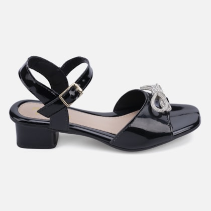 Especial DomidonaSandália Feminina Salto Infantil Verniz Laço Brilhante Strass Preto