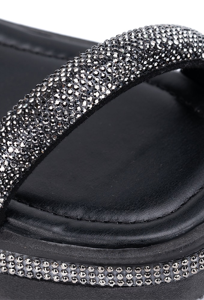 Especial DomidonaSandália Infantil Preta Salto Tratorado Tira De Strass