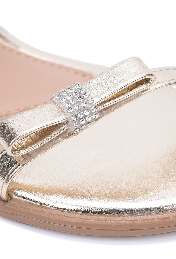 Com tiras delicadas e um laço frontal adornado com strass, essa sandália possui um acabamento brilhante e elegante. O fechamento com fivela ajustável oferece um ajuste seguro e confortável, permitindo que as meninas se movam com liberdade durante brincadeiras, danças e aventuras, garantindo praticidade e estilo o tempo todo.