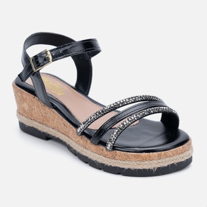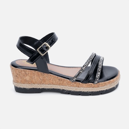 Especial DomidonaSandália Salto Anabela Preta Plataforma Menina Infantil