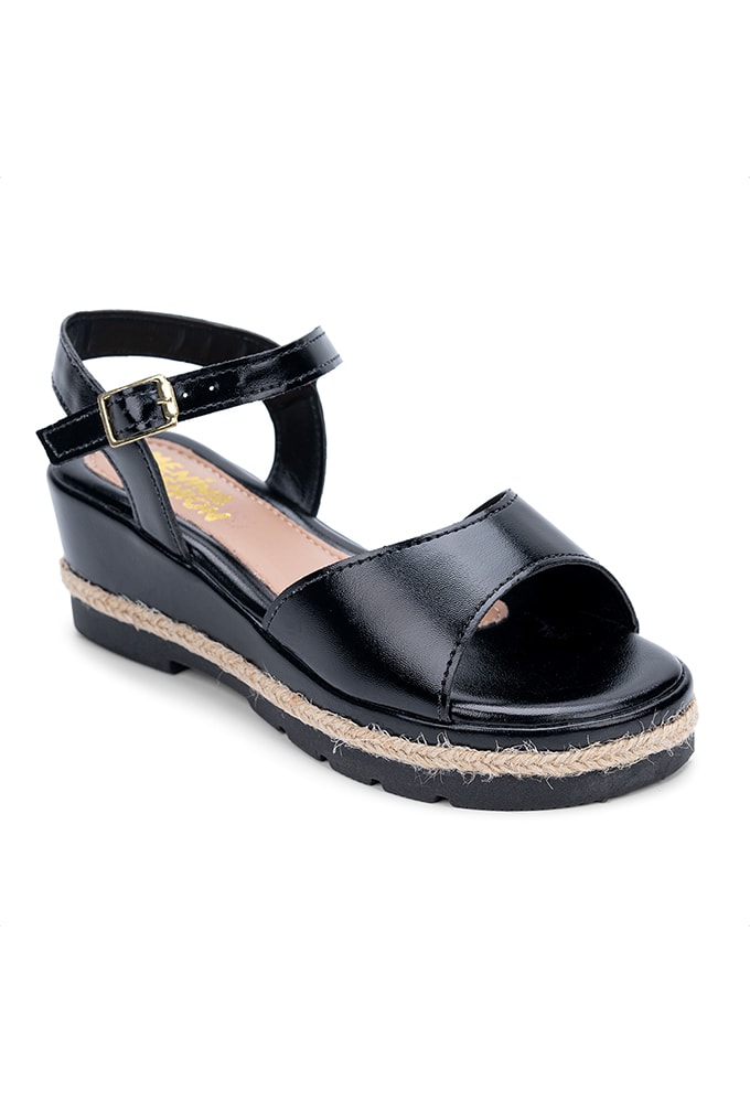 Sandália Salto Anabela Preta Plataforma Menina Infantil