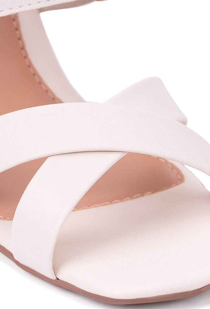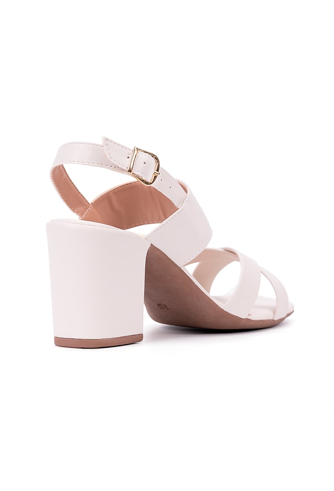 Sandália Salto Médio Grosso Tiras Cruzadas Feminina Domidona Off White