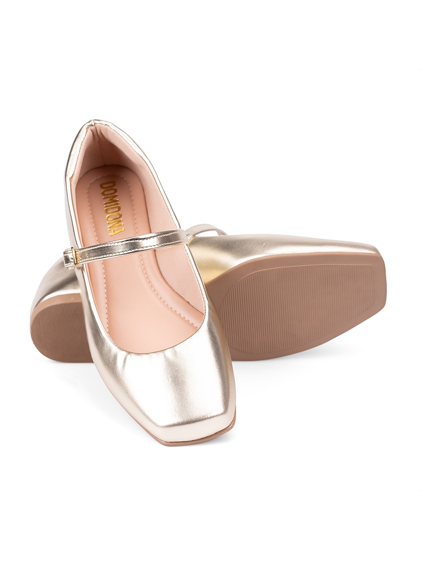 Sapatilha Feminina Dourada Bico Quadrado Tira Com Fivela