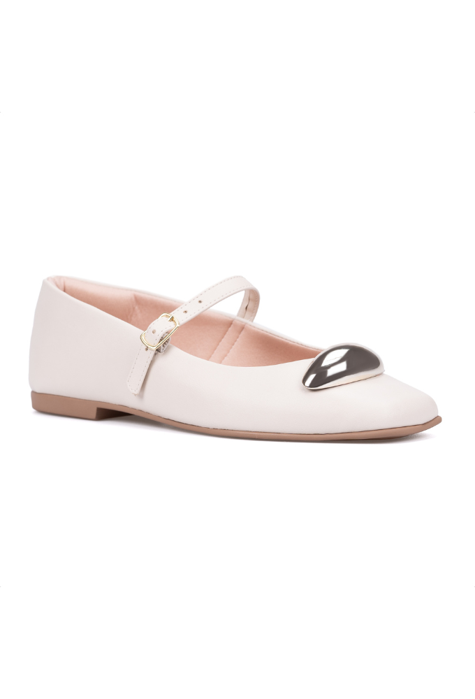 Sapatilha Feminina Estilo Boneca ABS Metalizado Off White