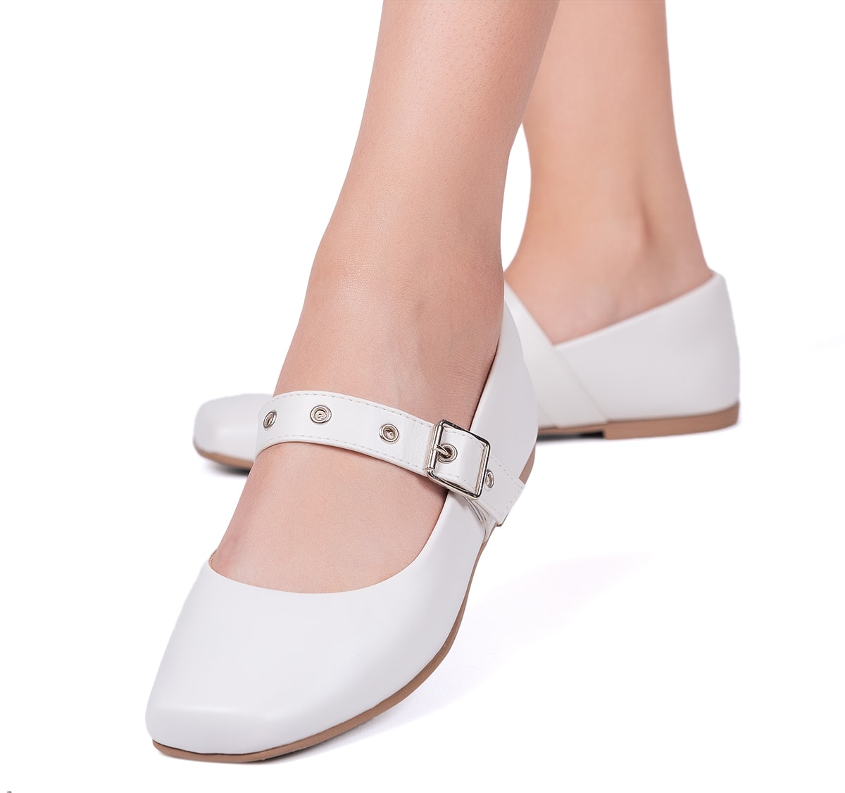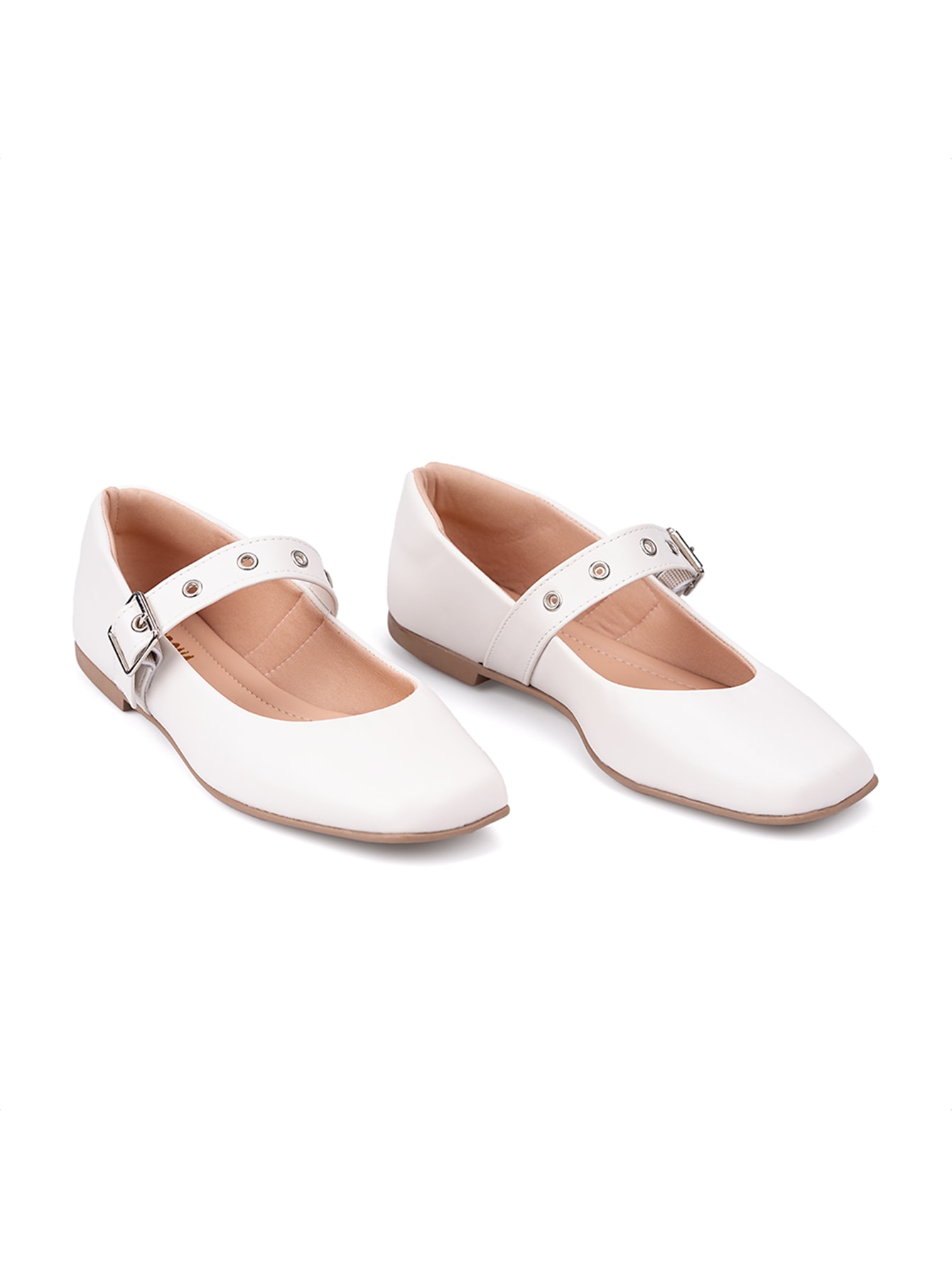 Sapatilha Feminina Off White Tira Ajustável E Fivela Cromada