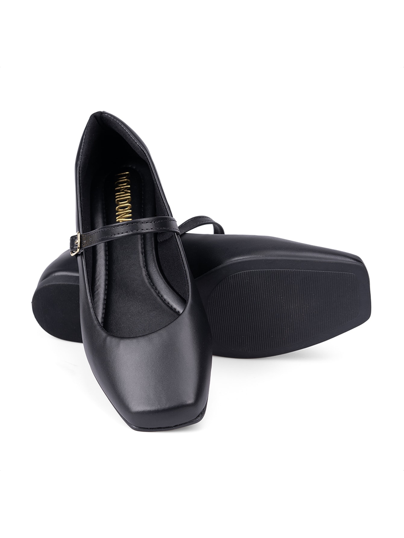 Especial DomidonaSapatilha Feminina Preta Bico Quadrado Tira Com Fivela
