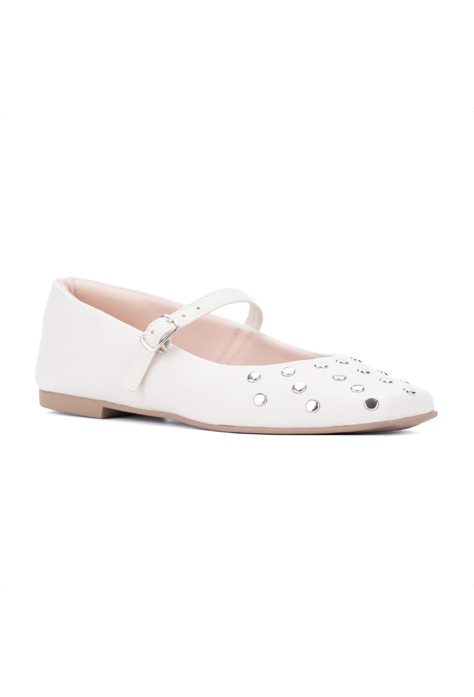 Sapatilha Feminina Tachas Metálicas Bico Quadrado
