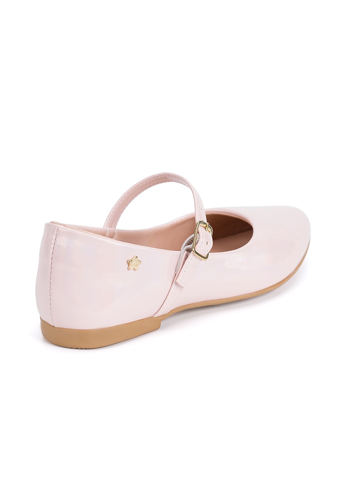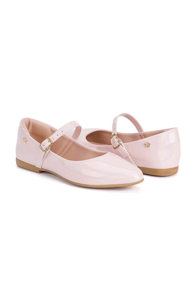 Com uma tira ajustável sobre o peito do pé, a sapatilha proporciona segurança e estabilidade para as pequenas aventureiras. A fivela dourada e o acabamento brilhante acrescentam um toque de sofisticação, tornando-a perfeita para qualquer ocasião especial.