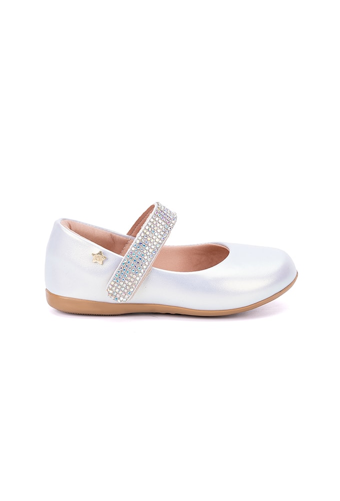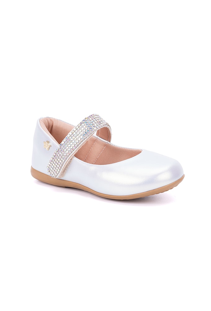 Sapatilha Infantil Prata Menina Bico Redondo Tira De Strass