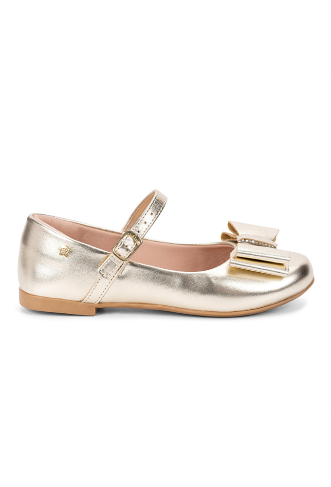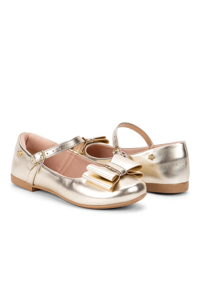 Sapatilha Menina Infantil Dourada Laço Com Strass Bico Redondo