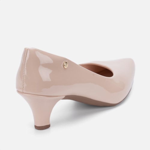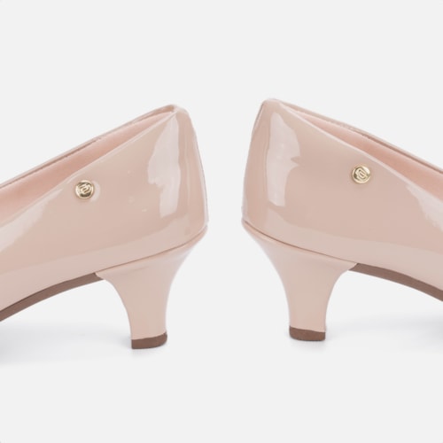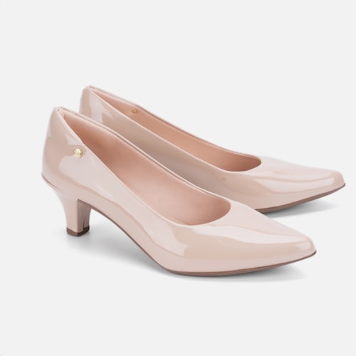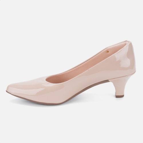 Scarpin Salto Baixo Verniz Bico Fino Nude